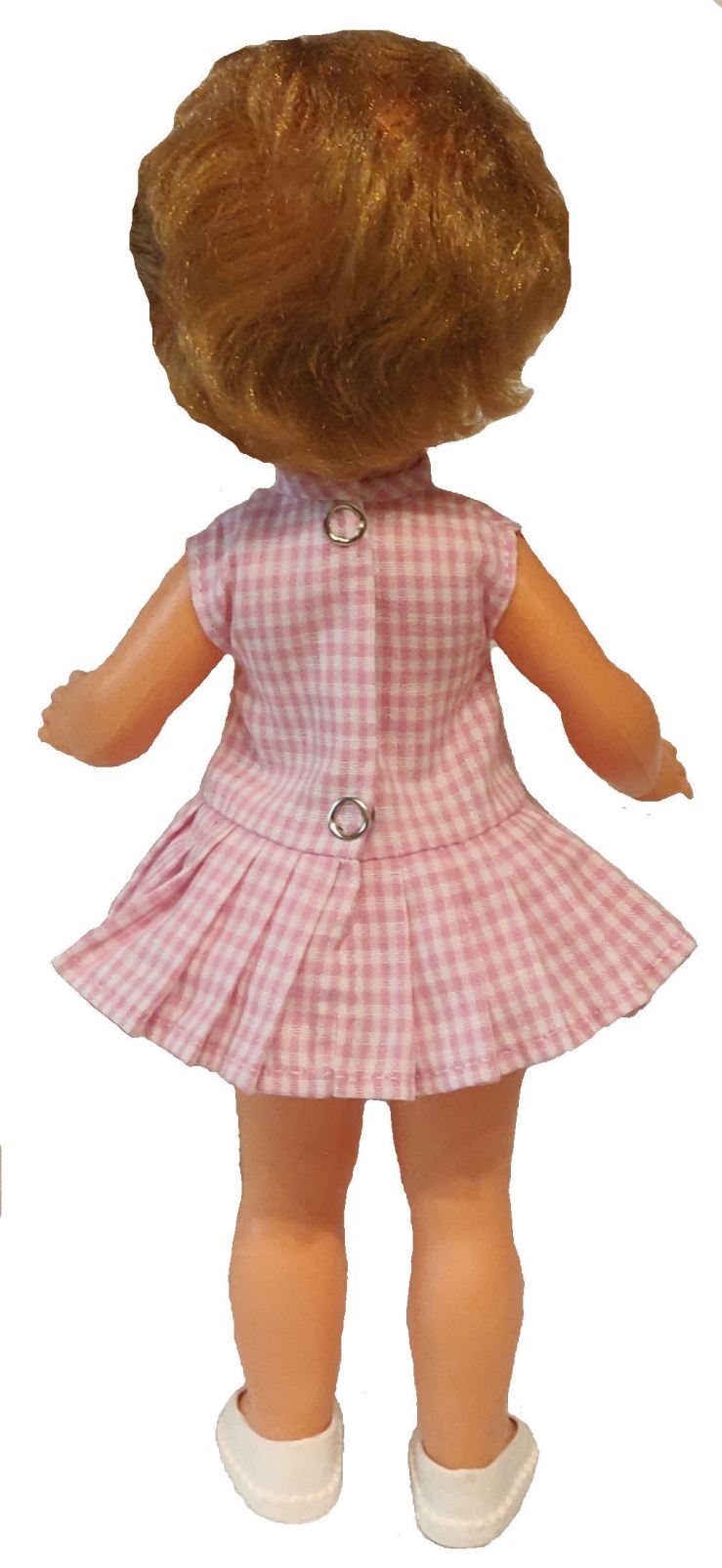 Pour fillettes et les jeunes filles, ces robes se déclinent en version plus pratique pour se mouvoir, avec des plis à partir des hanches, comme celle de cette poupée.