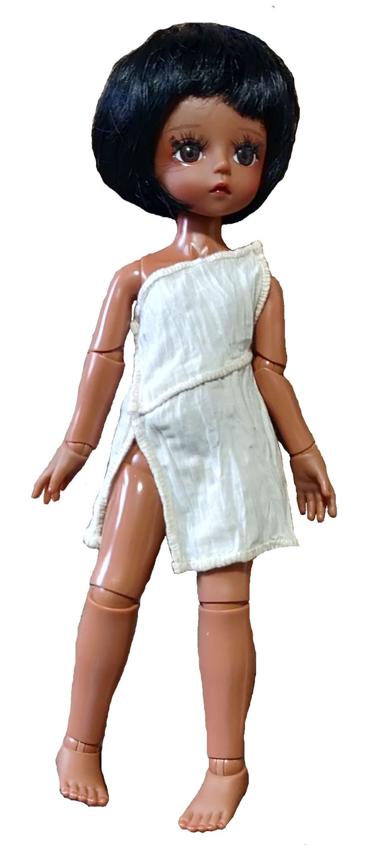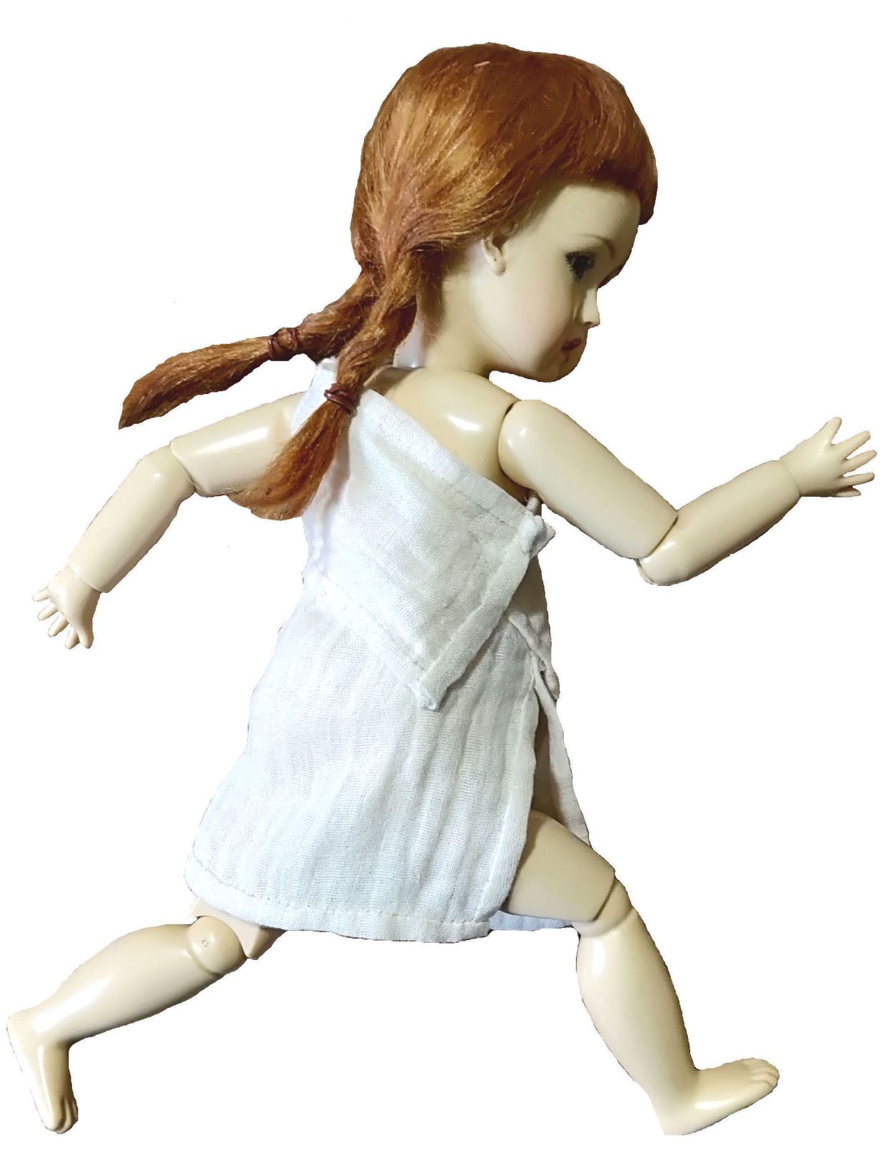 Les tuniques sont dérivés du vêtement de garçon, l’exomis, laissant donc le sein droit nu. Pour nos poupées, j’ai couvert les deux seins, en conformité avec nos usages contemporains ! En m’inspirant d’oeuvres d’art antiques je propose ici deux tuniques courte spartiates, une tunique évoquant la sculpture du british museum et une tunique courte à jupe plissée.
