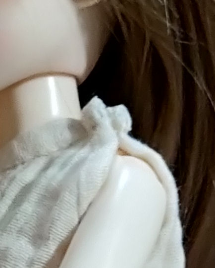 6° Coudre le bouton-pression sur l’angle qui ferme le chiton sur l’épaule.