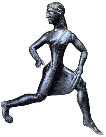 Jeune fille en train de courir, Laconie, v. 520-500 avant J.-C. . Bronze, H. 11 cm. British Museum1