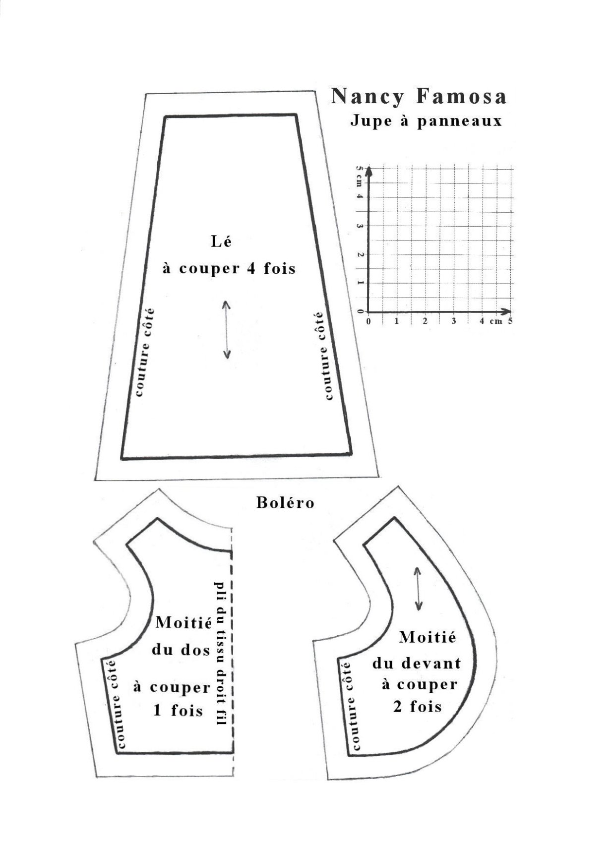 BOLERO : Assembler dos et devant par les coutures de côté. Faire un rempli sur tous les bords, piquer à 2 mm du bord et surfiler.